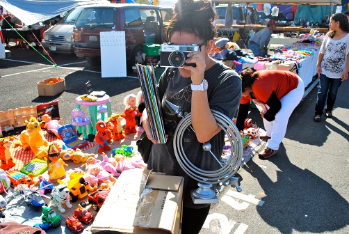 I have been dying to hit up one of the biggest flea markets around (50 years to be specific) the San Jose Flea Market. As much as I wanted to throw on some heels and a skirt to look cute and fashionable, sadly they just weren’t appropriate for this outing. Going to any flea market consists of rummaging through old things and a lot of walking.. 8 miles + some (to cover ALL the stations). I wouldn’t be caught dead attacking 8 miles in heels and a mini skirt. So instead I threw on a pair of my favorite lululemon pants, a fun T-shirt, and my nike tennis shoes. My outfit left me comfortable and ready to score some deals while eating great food.