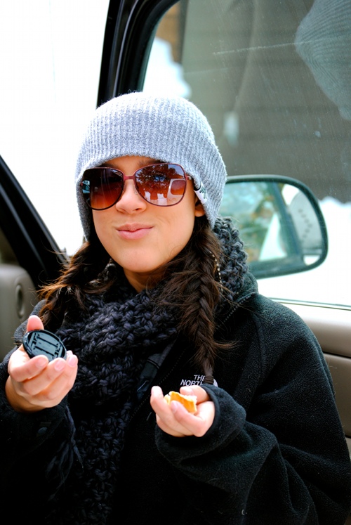 Brother’s  Neff Beanie, Marshall’s Sunglasses, Northface fleece, Sisters Scarf (f21?), Boyfriends snow pants