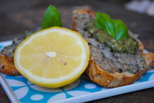 – Purée the beans mixed with a little pesto sauce, s&p, and lemon juice.